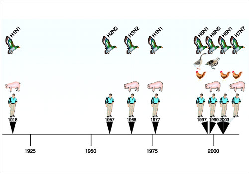 ไวรัสนก-ไก่ Lethal H5N1 ผมเขียนไว้ว่าไข้หวัดใหญ่มนุษย์มีแค่ Type H1-H3 ทีนี้ในนกมีตัว H5 ซึ่งไม่เคยทำให้มนุษย์เป็นโรคได้ เพราะเซลล์ของเราไม่มีส่วนไหนที่ไวรัสตัวนี้จะเจาะเข้าไปทำลายมันได้ คือไม่มี Receptor รีเซปเตอร์ (รีเซ๊ปเตอร์ เปรียบไปก็เหมือนรูหรือจุดอ่อนสำหรับที่เชื้อนั้น ๆ จะเกาะติดแล้วละลายเข้าไปในเซลล์ได้) แล้วอยู่ ๆ ก็มีคนเป็นไข้หวัดใหญ่นกนี้ถึง 232 คน แล้วก็ตายไปแล้ว 134 คน ในปี 2006 เท่ากับคนที่เป็นมีโอกาสตายได้ 50% ไม่มียารักษา