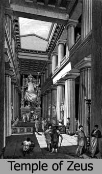 ที่แท้ Peloponese มันเกือบจะเป็นเกาะหนึ่งทีเดียว แต่มีสะดือ Isthmus ยาวสี่ไมล์ติดกับทางเอเธนส์ ที่เมืองท่า Corinth อันสะดือ Corinth Isthmus นี่กรีกสมัยโบราณ และโรมันสมัยจักรพรรดิ์ Nero ได้พยายามจะขุดเป็นคลองทางลัดเพื่อให้เรือวิ่งผ่านอย่างสะดวกระหว่างทะเล Adriatic กับ Aegean นี่ แต่ไม่สำเร็จ เพราะมันประกอบด้วยหินทั้งแท่ง แข็งมาก มาสำเร็จเป็น Corinth Canal เมื่อรู้จักใช้ดินระเบิดเมื่อปี 1893 นี่เอง คาบสมุทร Peloponnese เลยกลายเป็นเกาะจนได้ พระเจ้า Apollo เป็นองค์ที่เห็นว่าเจ้าชาย Pelops นี่เป็นนักกีฬาชั้นเยี่ยม เลยให้เกียรติสถานที่รจนาเสี่ยงพวงมาลัยเลือกคู่นี้ เป็นถิ่นที่จะแข่งขันกีฬาของชาวกรีกทั้งหมด เพื่อเป็นเกียรติแก่พระเจ้าแห่งขุนเขา Olympos สถานที่นี้อยู่นอกเมือง Altis หรือ Elis มีบริเวณกว้างมาก พระเจ้าจูปีเตอร์ต้องการสถานที่นี้เป็นสนามกีฬาและแหล่งชุมนุมของชาวกรีก โอลิมปิดเกมนี้เดิมเรียกว่า Panhellenic Games ขนาดลงพระหัตรจัดการถากถางป่าไม้แถบนี้ด้วยขวานฟ้า Thunder bolt สถานที่นี้เลยเปลี่ยนชื่อว่า Olympia ตรงกลางเป็นสถานที่ศักดิ์สิทธิ์เป็นโบสถ์ของเทพพระเจ้าซีอุส และเทพพระเจ้าคุณนาย Hera เฮร่า นอกนี้ยัง มีสระน้ำพุของนางอัปสรนางไม้ (นางตานีด้วย) Nymph ที่เก็บของบูชาเซ่นไหว้ Treasure ที่ประชุมแบบตึกมุงหลังคา มีที่จุดไฟบูชา Altar of Zeus และทุกสี่ปี ถ้าเคยอ่านเรื่อง เจ็ดมหัศจรรย์ของโลกโบราณ พระวิหารพระเจ้าจูปีเตอร์นี่เป็นหนึ่งในเจ็ดนั่นแหละ พระวิหารนี่สร้างในราวปี 450 BC สร้างอยู่เกือบ15ปี เมื่อพระวิหารสร้างเรียบร้อยแล้ว ก็ได้ขอร้องให้นักปฏิมากร Phidias คงต้องอ่านว่า ไฟดิแอส จากเอเธนส์ ผู้มีชื่อเสียงโด่งดัง เคยสร้างพระรูปของพระนาง อธีนา ในวิหาร Pathinone บนยอดเขาอะครอปโปริส Acropolis ครานี้เอาให้มันใหญ่เข้าไปอีก เป็นพระรูปจูปีเตอร์แบบนั่งบน บัลลังก์ สูง 40 ฟุต เป็นรูปไม้หุ้มด้วยทอง และงาช้าง รอบ ๆ ล้อมด้วยสระน้ำเล็ก ๆ บรรจุน้ำมันมะกอก กันไม่ให้งาช้างมันร้าวเพราะความแห้ง นอกกำแพงของสถานศักดิ์สิทธิ์ก็เป็นที่ฝึกซ้อมการกีฬาทั้งหลาย Gymnasium ที่พักผ่อนของนักกีฬาระหว่างฝึกซ้อม สถานที่แข่งม้า Hippodrome โดยเฉพาะ สถานที่แข่งขันการกีฬา Stadium แบบไม่มีที่นั่งแบบอัฒจันทร์ ต้องนั่งกับพื้นหญ้า หรือยืน คนที่ยืนดูคงจะตื่นเต้นกว่า คนดูต้องใส่เสื้อผ้าครับ จะมายืนร่า ๆ ไม่มีเสื้อผ้าไม่ได้ และผมคิดว่าคนที่ดูแล้วตื่นเต้นคงเป็นผู้หญิงมากกว่า เพราะว่าผู้ชายที่แข่งขันกันทุกคนล่อนจ้อน ไม่ใส่อะไรเลย เพราะเขาห้าม ดูกีฬาอย่างนี้ดีกว่าไปเสียสตางค์ดูผู้ชายโป๊ที่ไนท์คลับ Chippeandale’s ชิปเปินเด็ลเสียอีก ยกเว้นแต่กีฬาแข่งม้าเท่านั้น ไม่ว่าแ