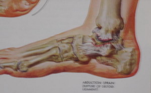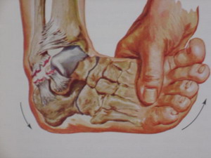 เอ็นที่ไม่ได้ทำหน้าที่รับน้ำหนักมากอย่างนั้นตามตาตุ่มและกระดูกข้อเท้าก็เลยฉีกขาด ถ้ามากกว่านั้นอาจกระชากเอากระดูกตาตุ่มตามออกมากด้วย กับเอ็นที่ขาด อาการของเท้าแพลงก็ บวม แดง แน่นอนปวดมากเลย แล้วต่อมาสักวันก็มีอาการช้ำเขียวที่เราเรียกว่าห้อเลือด เคยไปประชุมแพทย์ที่ซานฟรานซิสโก แล้วไปเห็นพวกสาว ๆ ใส่รองเท้าส้นสูงเดินขึ้นเดินลงตามถนนที่ขึ้น ๆ ลงตามเนินที่ชัน ต้องขอชมว่าเก่งมาก พวกใส่ส้นสูงนี้จะเกิดหกล้มแล้วขาแพลงมีมาก และจะเกิดตอนเดินขาลงตามเนิน ตอนขาขึ้น เกิดได้ยากหน่อย
