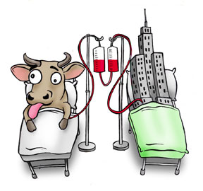 จะเล่าถึงกรุ๊ปของเลือดที่คนไข้ชอบถามมาก เลือดก็มีอยู่สี่กรุ๊ป คือ1. A, 2.B, 3. AB & 4. O ถ้าคนให้และคนรับอยู่ในกรุ๊ปเดียวกันก็สบาย รับได้เลย (แต่ยังก่อน มีเรื่องอื่นเข้ามายุ่งเกี่ยวด้วยหลายตัว) แต่ถ้าคนละกรุ๊ปกัน และจำเป็นก็ต้องเลือกเอาจากกรุ๊ปอื่นได้ เช่นกรุ๊ป O. คนที่มีเลือด O เขาเรียกว่าคนใจบุญ ใครมาขอให้ได้หมด (เช่นตัวผมเป็นต้น ให้มาหลายทีแล้ว รวมทั้งเงินทองด้วย) แต่จะรับจากคนนอกกรุ๊ป O ไม่ได้ ส่วนกรุ๊ป AB เขาเรียกว่ารับอีท่าเดียว กรุ๊ปไหนเขาให้รับได้หมด ส่วนกรุ๊ป A ก็ต้องกรุ๊ป A นอกนี้ต้องจากกรุ๊ป O เท่านั้น กรุ๊ป B นั้นก็ต้องจาก B และ O เท่านั้นเหมือนกัน ส่วนเชื้อเลือดลิง Rh(D) ก็มี บวกกับลบ ในคนธรรมดาคงไม่ร้ายแรงอะไร เพราะก่อนให้เลือด เราก็ทำการ Matching & crossing กันการผิดกรู๊ปอยู่แล้ว แต่ที่เดือดร้อนคือในหญิงมีครรภ์ และตัวเองมี Rh เป็นลบ (เขาเขียนเป็น rh-) และตัวลูกอุตริมีเลือดกรู๊ปเป็นR h+ จะทำให้เลือดในตัวเด็กที่อยู่ในครรภ์ถูกทำลายได้ ตายในท้อง ถ้ามีทางเลือก เราก็ต้องให้Type เดียวกัน แต่ก็มียกเว้น คือพวกลบให้บวกได้ ในคนที่ให้เลือดแบบ R h ที่ต่างกันทางบวกและลบ พวกลบให้บวกได้ แต่พวกบวกให้ลบไม่ได้ ฟังแล้วยุ่งจริง ๆ รู้ไว้แค่นี้ก็พอละสำหรับเรื่องของโคตรเราที่เป็นลิงมาก่อน เดี๋ยวจะปวดหัวตาย ก่อนให้เลือดนอกจากดูว่า Group หรือ Type เข้ากันได้แล้ว เขาต้องเอาเลือดของคนให้และคนไข้มา Cross-matching กัน ว่าเลือดสองกลุ่มนี้จะเข้ากันได้ไหม มีอะไรที่เกิดการณ์เกินกว่าที่คิดไว้ เพราะมีเรื่องของกรู๊ปน้อย ๆ ที่คิดไม่ถึงเกิดขึ้นได้ ต้องเอาเลือดของทั้งฝ่ายให้และรับมาผสมกัน จนเลือดทั้งสองเข้ากันก็ได้ ก็ใช้ได้