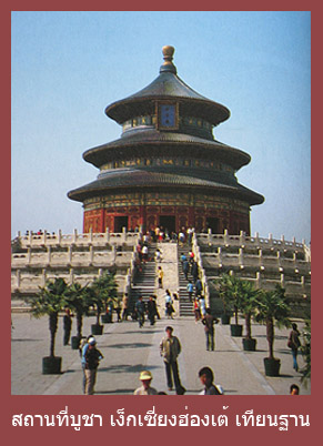 ขอฝอยนอกเรื่องหน่อย คนจีนประชากรมีสิทธิ์บูชาพระเจ้าทุกองค์ เว้นแต่ เง๊กเซี่ยงฮ่องเต้ องค์นี้องค์เดียวเท่านั้นแหละ ต้องให้ฮ่องเต้องค์ปัจจุบันเป็นคนบูชา กราบไหว้ ชาวบ้านบูชากราบไหว้ไม่ได้ ถือว่ากบฏ บังอาจติดต่อกับสวรรค์อย่างลับ ๆ โทษถึงหัวขาด เจ็ดชั่วโคตรทีเดียว ก่อนหน้าเจ็ดวันบูชา ฮ่องเต้จะต้องไม่นอนกับอีตัวทั้งหลาย ต้อง กินเจเจ็ดวัน รักษาเนื้อรักษาตัวอยู่ในห้องหอที่เตรียมไว้ ท่องบทสวดเกี่ยวกับสวรรค์ ถึงวันไหว้ก็ต้องปิดราชการหลายวัน หอบูชาพระเจ้า เง็กเซี่ยนอ่องเต้นี่อยู่ในวันหลวง เป็นหอกลม อยู่บนเชิงสี่เหลี่ยม เรียกว่า เทียนฐาน แปลว่าหอของสวรรค์หอกลมนี่เป็นสัญญาลักษณ์ว่าเป็นถิ่นสวรรค์ ฐานชั้นล่างเป็นสี่เหลี่ยม แปลว่าถิ่นของมนุษย์เป็นสี่ทิศ สวนที่เป็นหอจะต้องเป็นหอกลม หมายถึงสวรค์ครอบจักรวาล ตอนผมไปทัศนะหอนี้ที่ปักกิ่ง ไม่เห็นพระสักองค์ มีแต่คนยืนชักว่าวที่หลังหอแถวลานที่กว้าง เข้าใจว่าสมัยก่อนเป็นที่ ๆ พวกพระ หรือพระวรญาติมาเข้าแถวตามวิธี ตัว เง็กเซี่ยงฮ่องเต้ ไม่เห็นมีตัวตนในวิธี เป็นแต่ป้ายสีม่วงเขียนเอาไว้บนแท่นเท่านั้น การบูชานี่ถ้าทำไม่ถูกต้อง หรือฮ่องเต้ที่ทำชั่วช้าไว้มาก จนสวรรค์ไม่ยอมรับ ฟ้าจะพิโรธ ฝนฟ้าจะตกผิดปรกติ อาจเกิดภัยแห้งแล้ง หรือน้ำท่วม จากแม่น้ำทั้งหลาย คนตายเป็นแสนเป็นล้านได้ ไพร่ฟ้าจะเดือดร้อนไปหมด การเพาะปลูกไม่ได้ผล ภาษีก็เก็บไม่ได้เต็มเม็ดเต็มหน่วย การกบฏจากประชาชนจะเกิดขึ้น เพราะถือว่า ฮ่องเต้องค์ปัจจุบันทรงทำให้ สวรรค์เบื้องบนไม่โปรดปราณ ด้วยความเน่าเฟะของราชวังหลวง ราชบัลลังก์ก็สั่นคลอนตามไปด้วย ฮ่องเต้อาจจะถูกเชือดคอได้อย่างสบาย เห็นหรือยังครับ การบูชาพระเจ้า “เง๊ก เซี่ยง ฮ่องเต้” มันสำคัญไฉนกัน ถ้ากษัตริย์ใดละเลย หรือกระทำความชั่ว ราชวงศ์ก็สั่นคลอนไปด้วย ศูนย์สลายไปในที่สุด ใครเล่าจะเป็นผู้กำกับการแสดงพิธีได้ดีไปกว่าพระหรือนักพรตเต๋า ซึ่งเป็นตำแหน่งราชครูทางพิธีการ และเป็นผู้ซึ่งต้องรู้ถึงตำนานการเกิดของดินฟ้า พระเจ้าบนสวรรค์องค์ต่าง ๆ และวิธีการติดต่อพระเจ้าองค์ต่าง ๆ เหล่านี้ ยังต้องจดจำถึงการเคลื่อนที่ของดวงดาว วันที่ ฤดูต่าง ๆ วันเดือนที่จะเพาะปลูก วัน และราศี ฤกษ์ในการแต่งงาน การปลูกบ้าน ย้ายบ้าน แม้แต่วันที่จะเดินทางทั้งหลาย วันทำสงคราม สอนและตั้งกฎถึง ชีวิตประจำวันทั้งของหลวง ของราษฎร์ คือ “ เสื้อผ้า อาหาร ที่อยู่ การเดินทาง” และการรักษาสุขภาพด้วยความรู้ของ “ทอง ไม้ น้ำ ไฟ ดิน” (ซึ่งต่างจากของอินเดีย ท